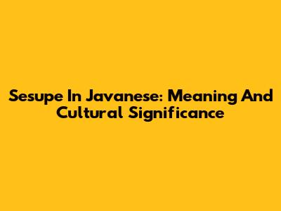Sesupe In Javanese: Meaning And Cultural Significance