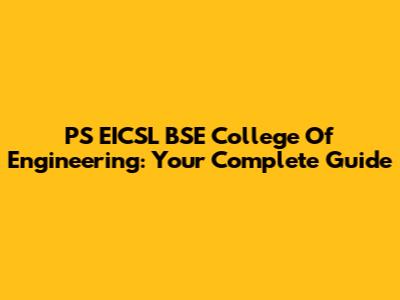 PS EICSL BSE College Of Engineering: Your Complete Guide