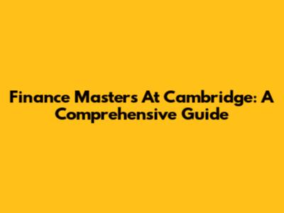 Finance Masters At Cambridge: A Comprehensive Guide