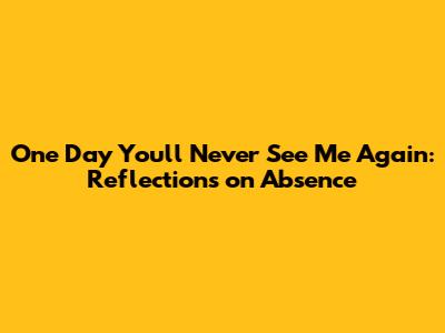 One Day You'll Never See Me Again: Reflections On Absence