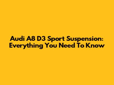 Audi A8 D3 Sport Suspension: Everything You Need To Know