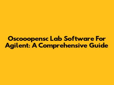 Oscooopensc Lab Software For Agilent: A Comprehensive Guide