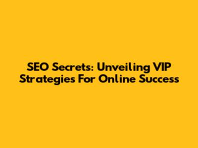 SEO Secrets: Unveiling VIP Strategies For Online Success
