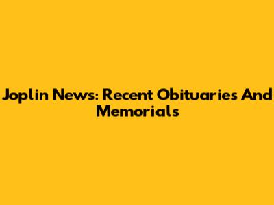 Joplin News: Recent Obituaries And Memorials