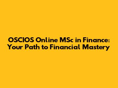 Hey guys! Are you dreaming of a career in finance? Maybe you're already in the field and looking to level up your skills? Well, you're in the right place! We're diving deep into the OSCIOS Online MSc in Finance, a program that could be your ticket to financial mastery. This isn't just another online course; it's a comprehensive master's degree designed to equip you with the knowledge and skills needed to thrive in the dynamic world of finance. We'll explore everything from the curriculum and career opportunities to the benefits of online learning and what makes OSCIOS stand out. Buckle up; it's going to be a fun and informative ride!