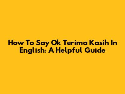 How To Say 'Ok Terima Kasih' In English: A Helpful Guide
