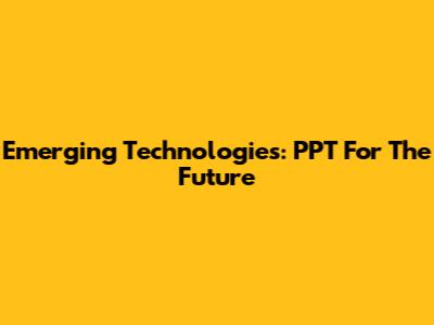 Emerging Technologies: PPT For The Future