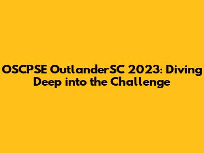 The Core Objectives of the OSCPSE OutlanderSC 2023