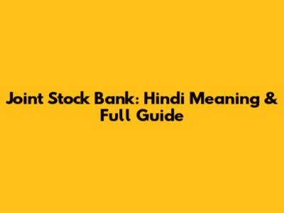 Joint Stock Bank: Hindi Meaning & Full Guide