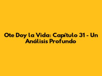 ¡Hola a todos, amigos! Hoy nos sumergimos en el fascinante mundo de "Ote Doy la Vida" con un análisis detallado del capítulo 31. Prepárense para un viaje lleno de emociones, giros inesperados y, por supuesto, mucho drama. En este capítulo, las tramas se intensifican, los personajes se enfrentan a nuevos desafíos y las relaciones se ponen a prueba. Acompáñenme mientras exploramos cada detalle, cada diálogo y cada escena para entender mejor lo que este capítulo nos depara. ¿Están listos para desentrañar los secretos y las complejidades de "Ote Doy la Vida"? ¡Vamos allá!