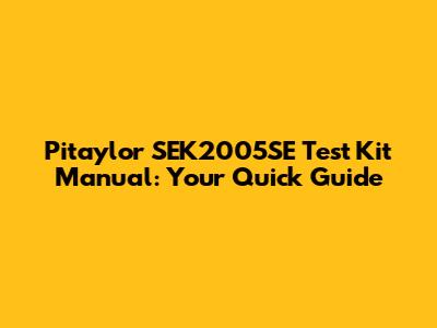 Pitaylor SEK2005SE Test Kit Manual: Your Quick Guide
