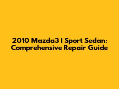 2010 Mazda3 I Sport Sedan: Comprehensive Repair Guide