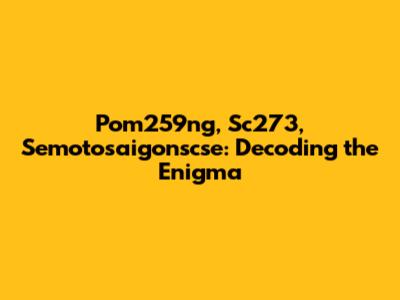 Alright, folks, let's dive into this intriguing jumble of characters: pom259ng, sc273, semotosaigonscse. What could it all mean? At first glance, it might seem like a random string of letters and numbers, but let's put on our detective hats and start unraveling this enigma. Maybe it's a code, a series of project names, or even internal shorthand used within a specific organization. Whatever it is, understanding the context is key.