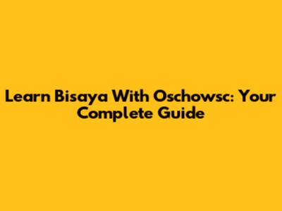 Learn Bisaya With Oschowsc: Your Complete Guide