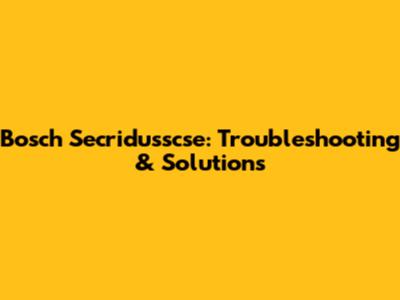 Bosch Secridusscse: Troubleshooting & Solutions