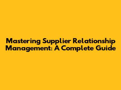 Mastering Supplier Relationship Management: A Complete Guide