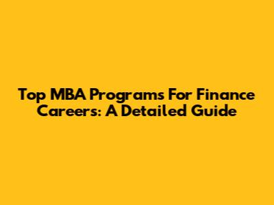 Top MBA Programs For Finance Careers: A Detailed Guide