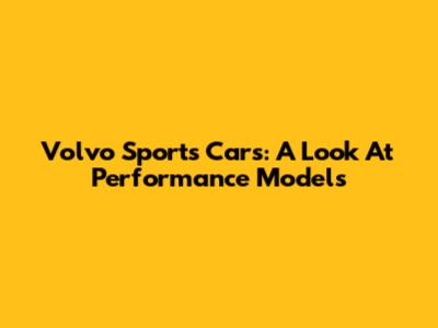 Volvo Sports Cars: A Look At Performance Models