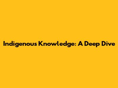 Indigenous Knowledge: A Deep Dive