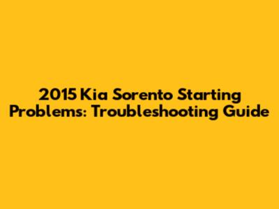 2015 Kia Sorento Starting Problems: Troubleshooting Guide