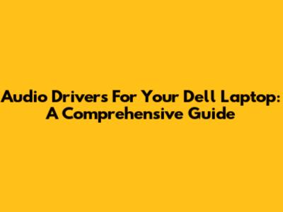 Audio Drivers For Your Dell Laptop: A Comprehensive Guide