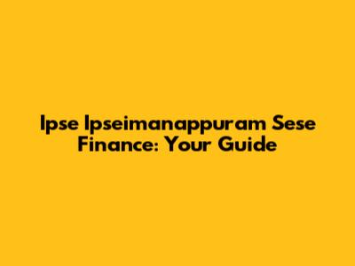 Ipse Ipseimanappuram Sese Finance: Your Guide