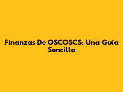 Finanzas De OSCOSCS: Una Guía Sencilla