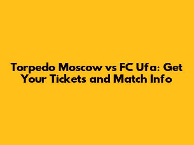 Torpedo Moscow Vs FC Ufa: Buy Tickets & Match Info