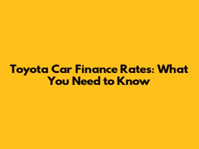 Understanding Toyota car finance rates is essential for making an informed decision when purchasing a Toyota. By considering factors like your credit score, loan term, and down payment, shopping around for rates, and negotiating with the dealership, you can secure favorable financing terms and save money on your car loan. Always compare multiple offers and focus on the APR to ensure you're getting the best possible deal. With careful planning and research, you can drive away in your dream Toyota with confidence.