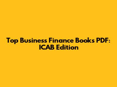 Top Business Finance Books PDF: ICAB Edition