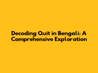 - The cultural implications: The concept of "quitting" can have different connotations in Bengali culture. For example, in some contexts, there might be a greater emphasis on perseverance and not giving up. In other situations, quitting might be seen as a necessary step towards personal growth or a better opportunity. Understanding these cultural sensitivities can help you choose the most appropriate way to express the idea of "quit."