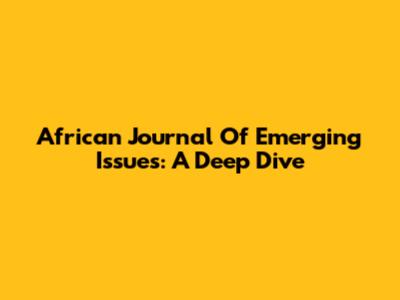 African Journal Of Emerging Issues: A Deep Dive
