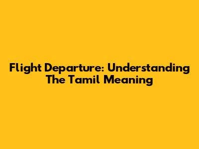 Flight Departure: Understanding The Tamil Meaning