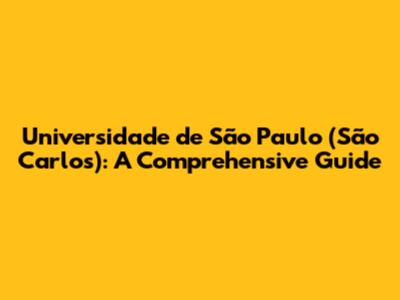Unveiling Universidade De São Paulo (São Carlos): A Comprehensive Guide