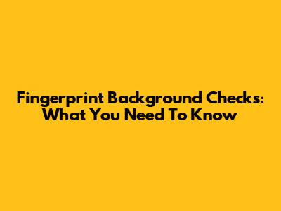 Fingerprint Background Checks: What You Need To Know