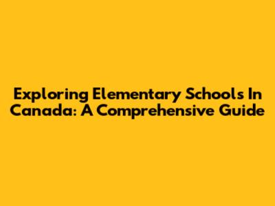 Exploring Elementary Schools In Canada: A Comprehensive Guide