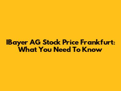 IBayer AG Stock Price Frankfurt: What You Need To Know