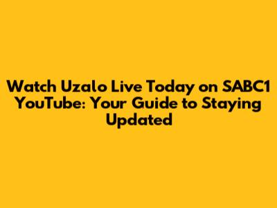 Hey guys! Are you a die-hard fan of Uzalo? Do you find yourself constantly checking for the latest episodes? Well, you're in luck! This article is your ultimate guide to watching Uzalo live today on SABC1 via YouTube. We're going to dive deep into how you can catch all the drama, excitement, and your favorite characters in real-time. We'll also cover some tips and tricks to make sure you don't miss a single moment. So, grab your snacks, get comfortable, and let's get started!