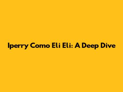 Iperry Como Eli Eli: A Deep Dive