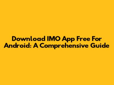 Download IMO App Free For Android: A Comprehensive Guide
