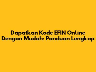 Dapatkan Kode EFIN Online Dengan Mudah: Panduan Lengkap