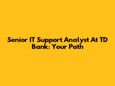 Senior IT Support Analyst At TD Bank: Your Path