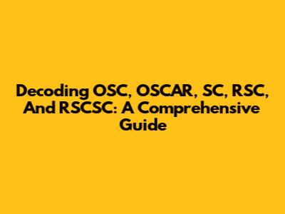 Decoding OSC, OSCAR, SC, RSC, And RSCSC: A Comprehensive Guide