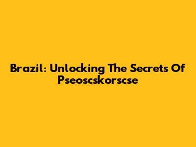 Brazil: Unlocking The Secrets Of Pseoscskorscse